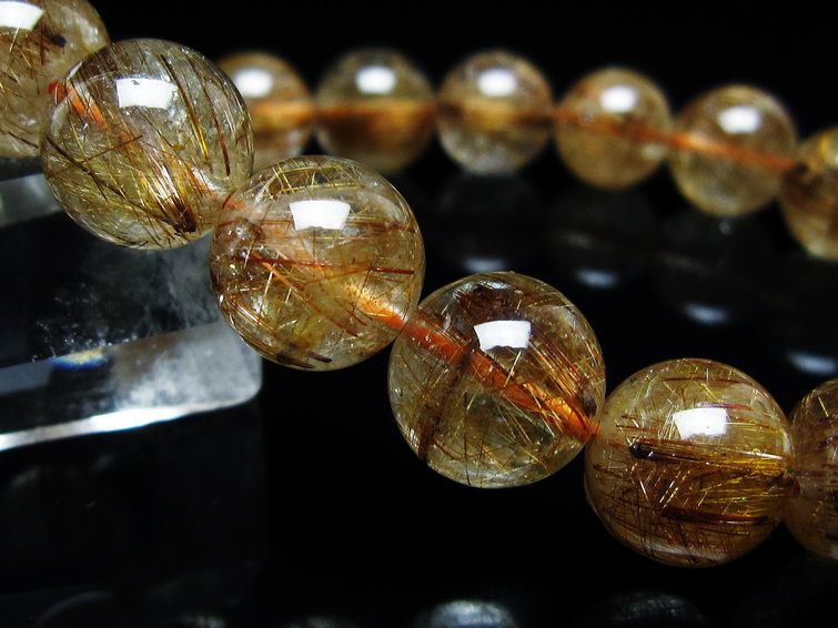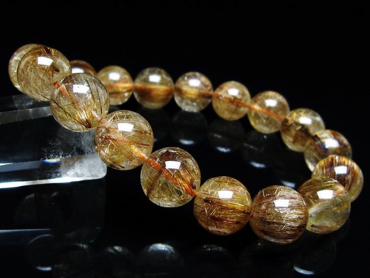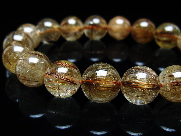ゴールド タイチンルチルクォーツ ブレスレット 14mm 一点物 211-2417