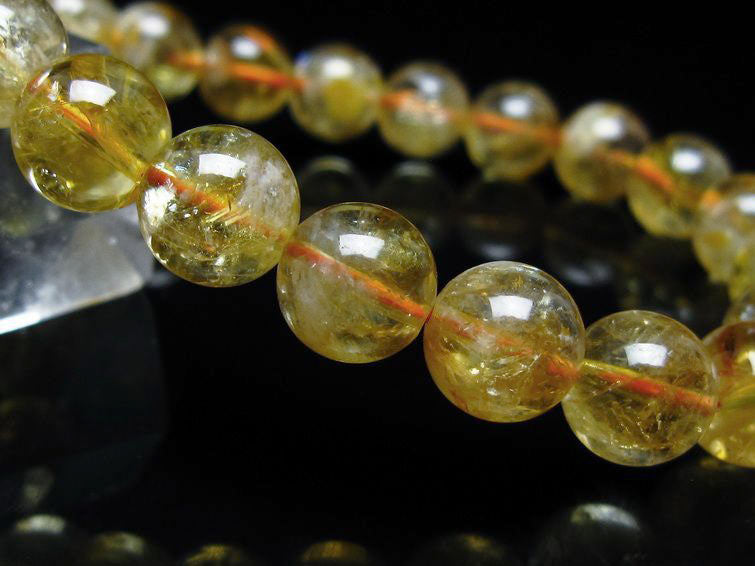 ゴールド タイチンルチルクォーツ ブレスレット 14mm 一点物 211-2417