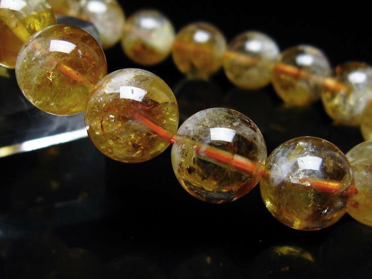ゴールド タイチンルチルクォーツ ブレスレット 14mm 一点物 211-2417