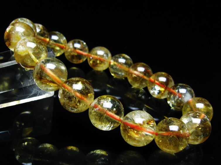 ゴールド タイチンルチルクォーツ ブレスレット 14mm 一点物 211-2417