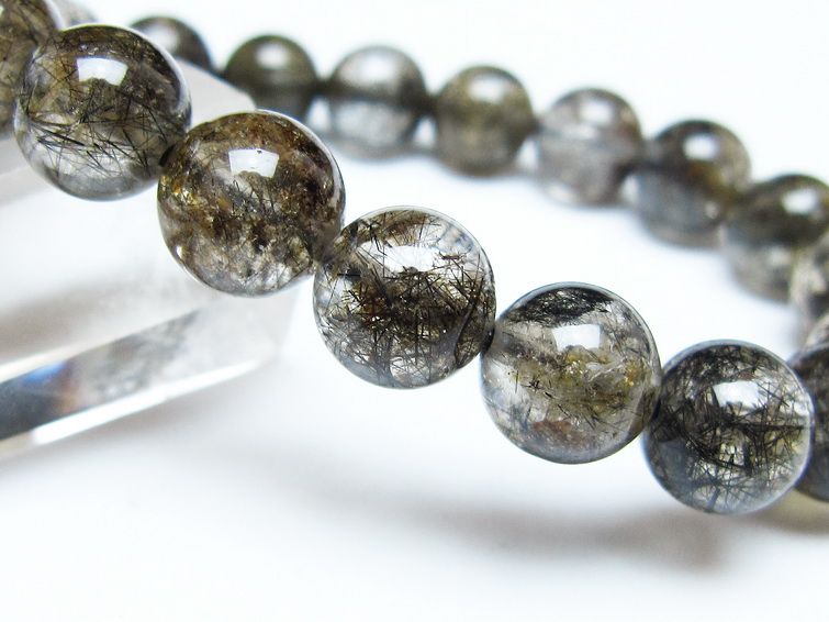 ブラックルチルクォーツ ブレスレット 10mm ブラックトルマリン トルマリネイテッドクォーツ 一点物 メール便可 [M便 1/10] 111-47026