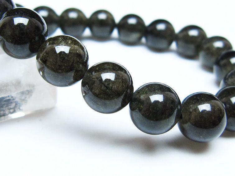 ブラックルチルクォーツ ブレスレット 10mm ブラックトルマリン トルマリネイテッドクォーツ 一点物 メール便可 [M便 1/10] 111-47061