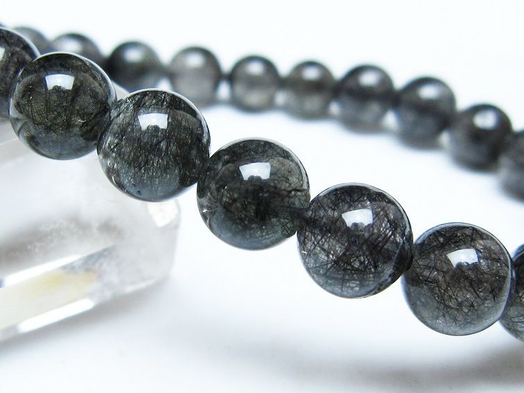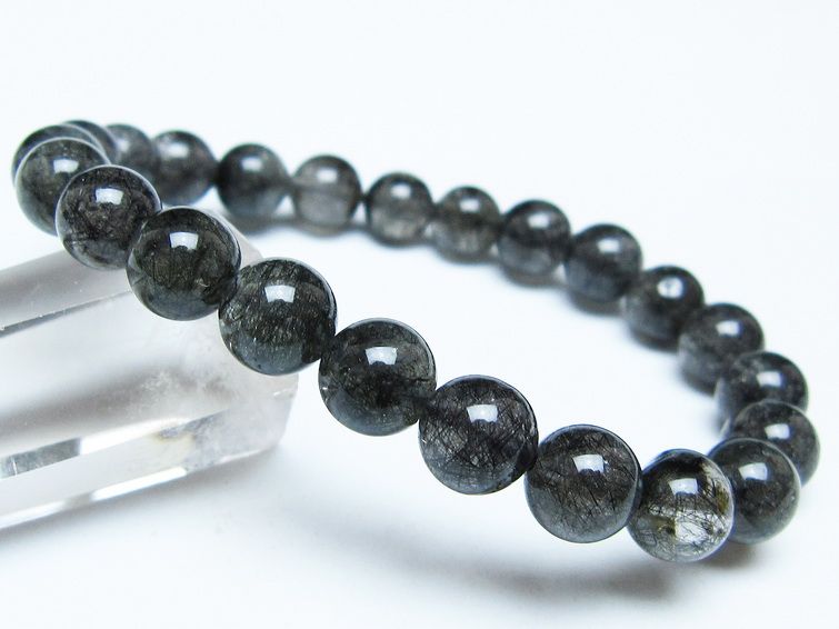 ブラックルチルクォーツ ブレスレット 8mm ブラックトルマリン トルマリネイテッドクォーツ 一点物 メール便可 [M便 1/10] 111-47070