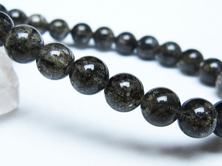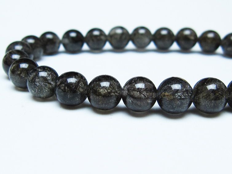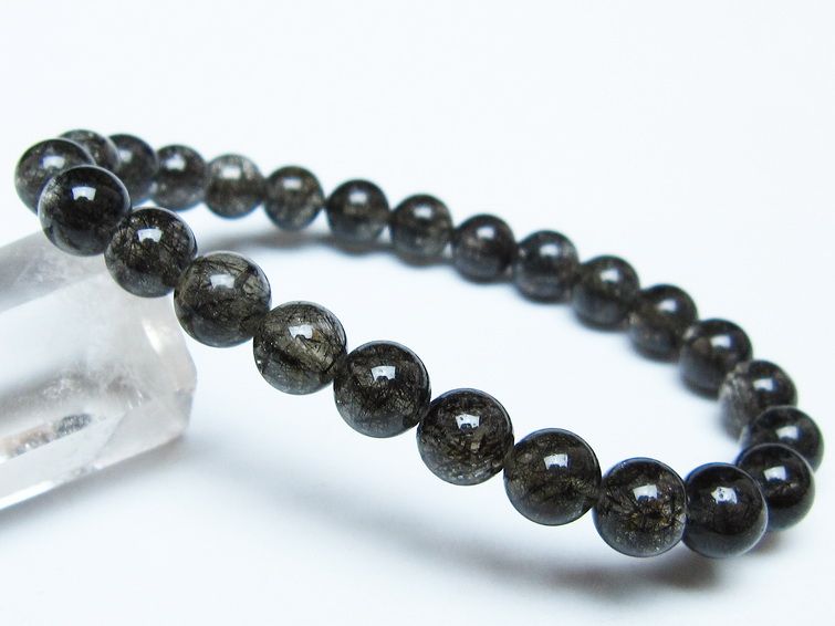 ブラックルチルクォーツ ブレスレット 7mm ブラックトルマリン トルマリネイテッドクォーツ 一点物 メール便可 [M便 1/10] 111-47077