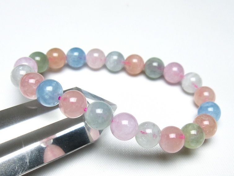 ミックスカラーベリル ブレスレット 9mm 一点物 メール便可 [M便 1/10] 111-48873