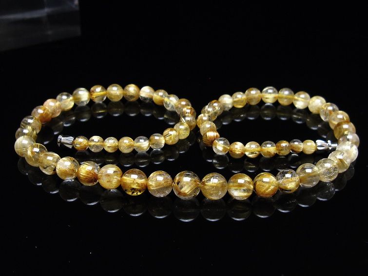ゴールド タイチンルチルクォーツ ブレスレット 14mm 一点物 211-2417