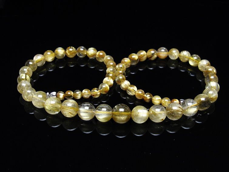 ゴールド タイチンルチルクォーツ ブレスレット 14mm 一点物 211-2417