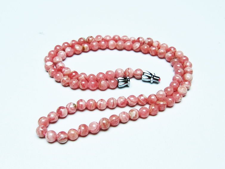 インカローズは、正式名称を「ロードクロサイト」といい、ギリシャ語で「バラ色の石」を意味します。バラの色のように美しい赤みを帯びたピンクの色で、白い縞が入り、石をカットした断面図がバラの花が開くような模様をしており、インカ帝国が栄えた時代アンデス山脈の鉱山より取れたため、名付けられました。