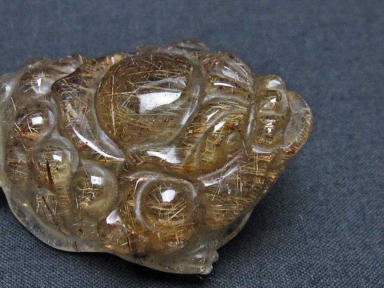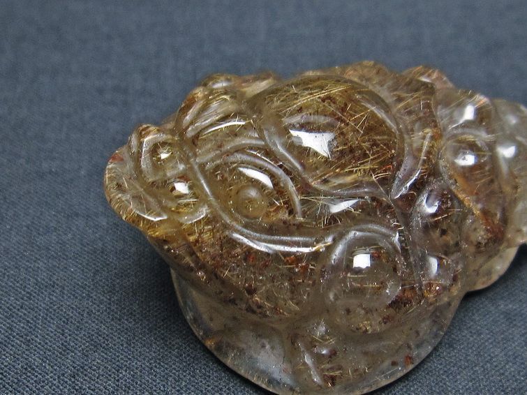 - ルチルクォーツ 金蟾 置物 手彫り 彫刻品 キンセン ルチル 原石