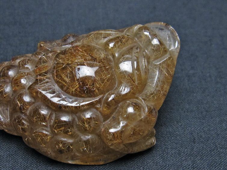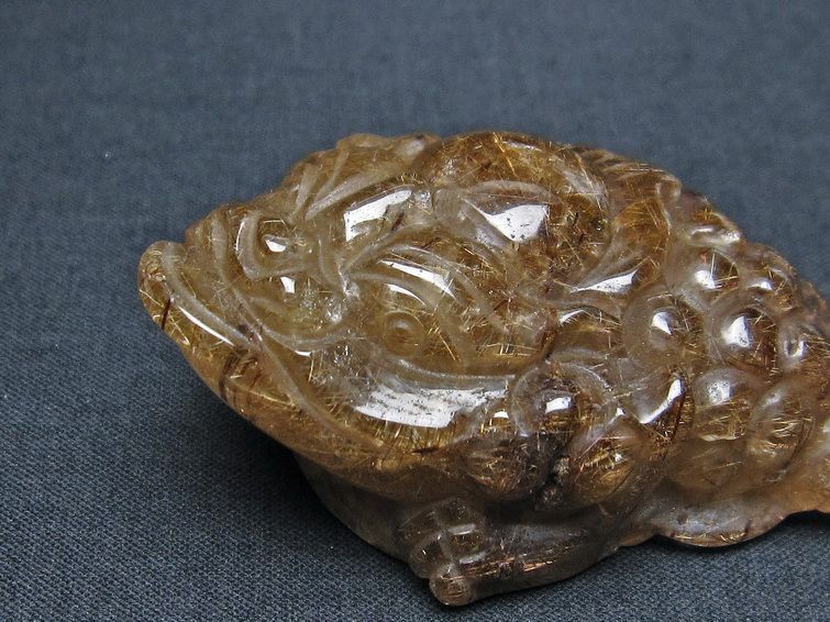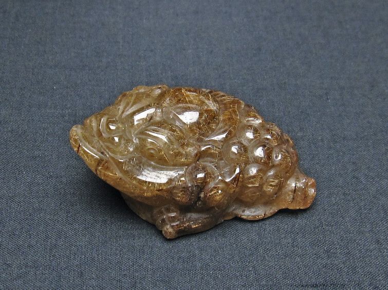 - 金針ルチル 金蟾 置物 手彫り 彫刻品 キンセン ルチルクォーツ 原石