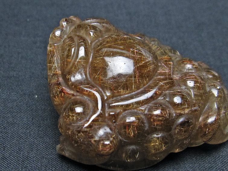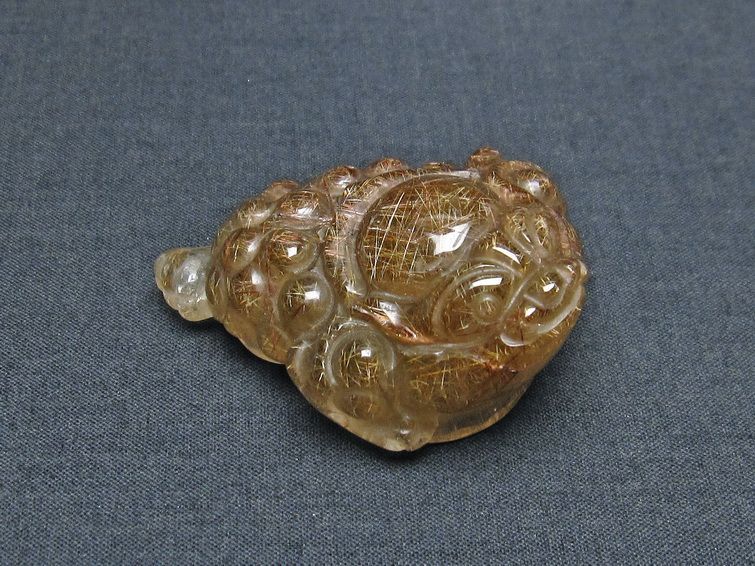 - 金針ルチル 金蟾 置物 手彫り 彫刻品 キンセン ルチルクォーツ 原石