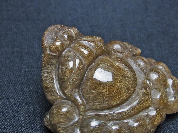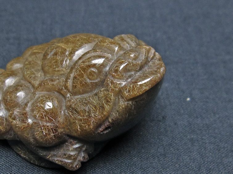 - 金針ルチル 金蟾 置物 手彫り 彫刻品 キンセン ルチルクォーツ 原石
