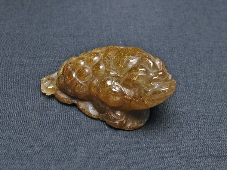 - 金針ルチル 金蟾 置物 手彫り 彫刻品 キンセン ルチルクォーツ 原石