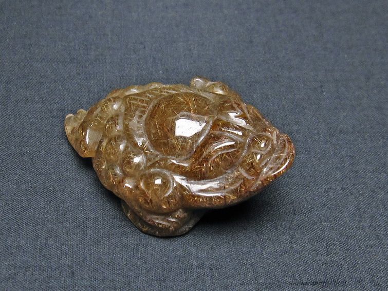 - 金針ルチル 金蟾 置物 手彫り 彫刻品 キンセン ルチルクォーツ 原石