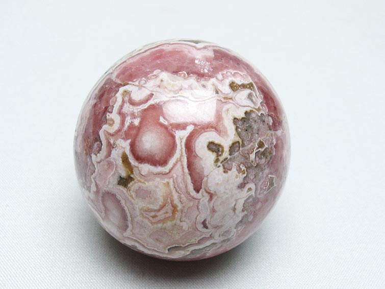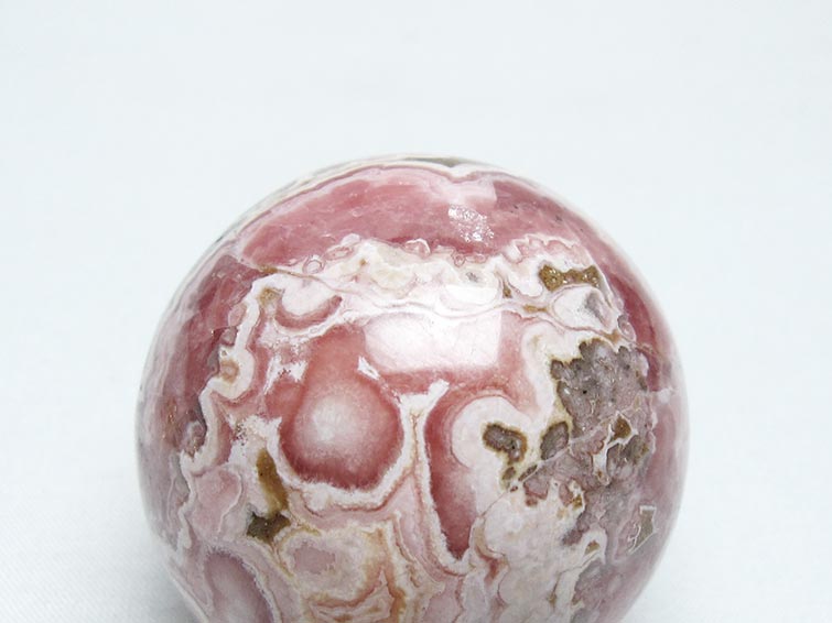 インカローズは、正式名称を「ロードクロサイト」といい、ギリシャ語で「バラ色の石」を意味します。バラの色のように美しい赤みを帯びたピンクの色で、白い縞が入り、石をカットした断面図がバラの花が開くような模様をしており、インカ帝国が栄えた時代アンデス山脈の鉱山より取れたため、名付けられました。