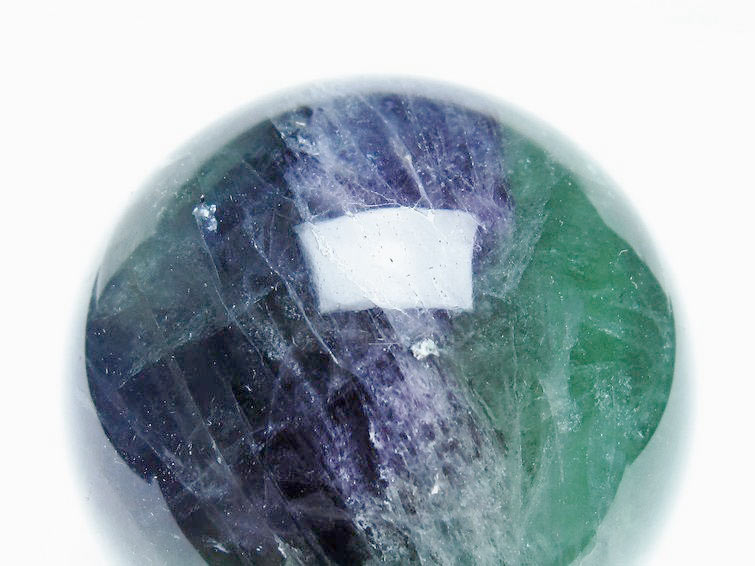 フローライトの語源はラテン語の「流れる(fluere)」です。また和名では蛍石と言いますが、こちらは火に近づけるとパチパチと弾けて蛍の様に光り輝くという現象が由来とされます。水には弱く水分で溶ける性質を持つ鉱物なので、浄化の際はセージを使用するとよいでしょう。長時間の日光浴で退色する事があるので、強い光も要注意です。