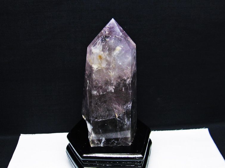 1.1Kg アメジスト 六角柱 アメシスト ポイント 置物 原石 虹入り ファントム 台座付属 一点物 152-2135