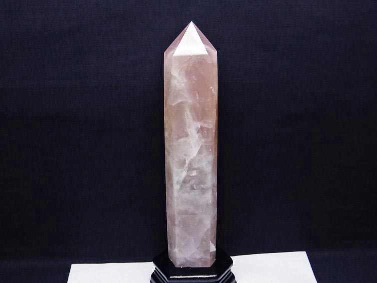 1.4Kg ローズクォーツ ポイント 六角柱 台座付属 一点物 152-2542