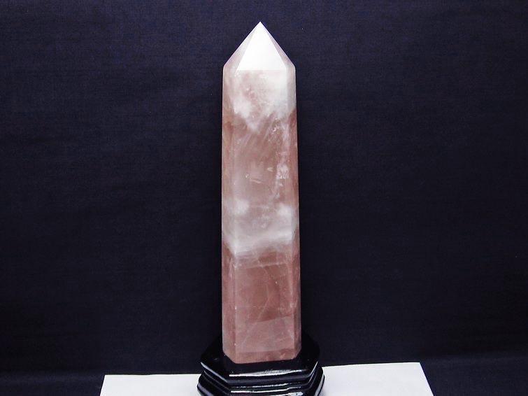 - 1.7Kg ローズクォーツ ポイント 六角柱 台座付属