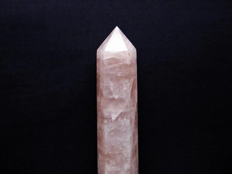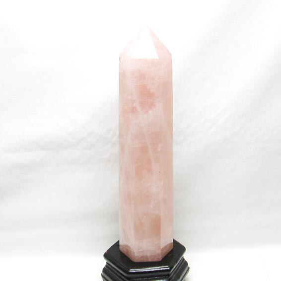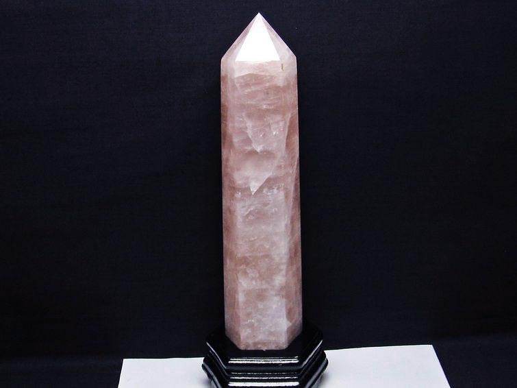 - 1.8Kg ローズクォーツ ポイント 六角柱 台座付属