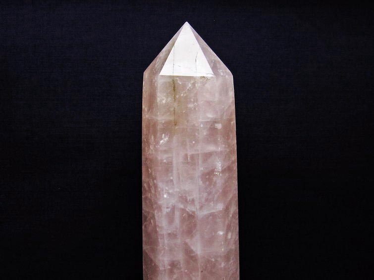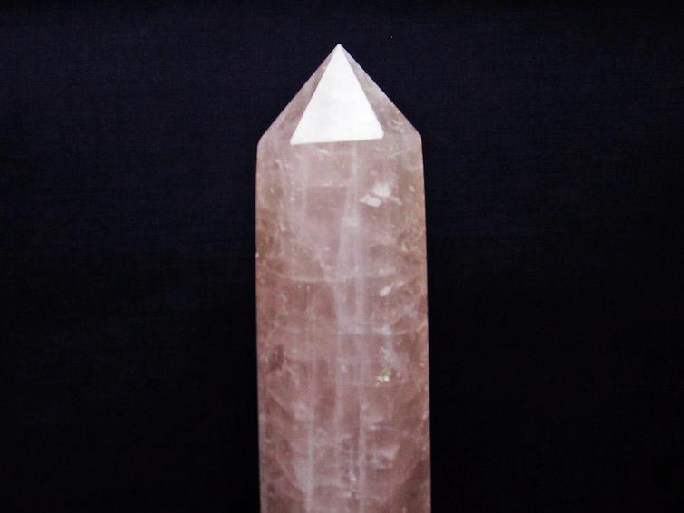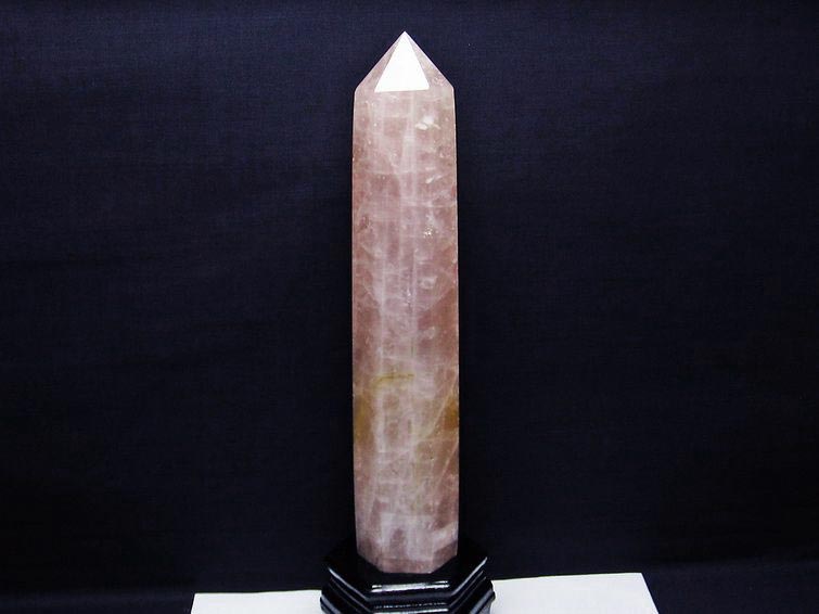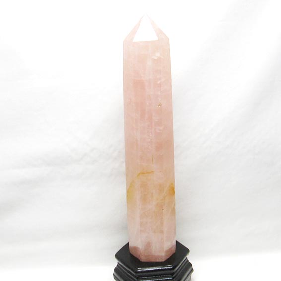 - 1.8Kg ローズクォーツ ポイント 六角柱 台座付属