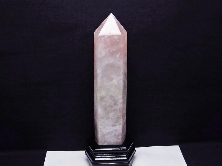 1.6Kg ローズクォーツ ポイント 六角柱 台座付属 一点物 152-2553