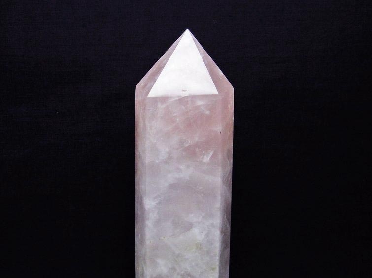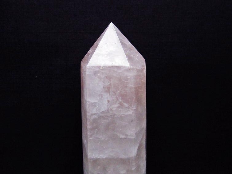 - 1.6Kg ローズクォーツ ポイント 六角柱 台座付属