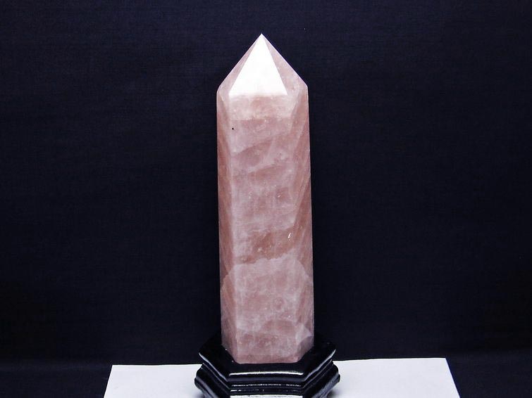 1.7Kg ローズクォーツ ポイント 六角柱 台座付属 一点物 152-2554
