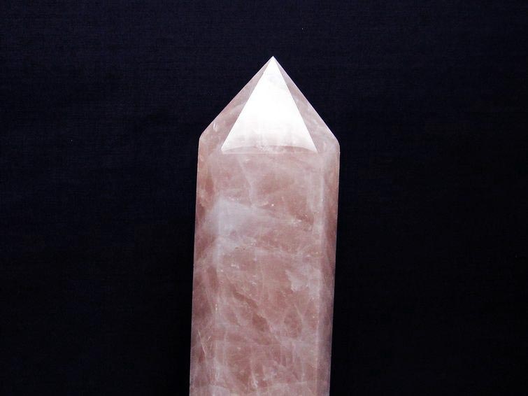 - 1.7Kg ローズクォーツ ポイント 六角柱 台座付属