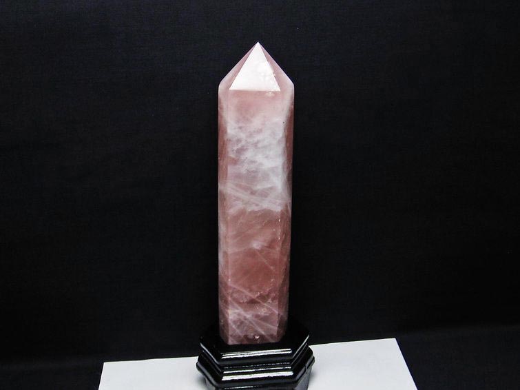 - 1.7Kg ローズクォーツ ポイント 六角柱 台座付属