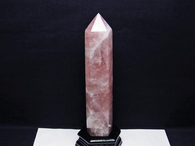 - 1.2Kg ローズクォーツ ポイント 六角柱 台座付属