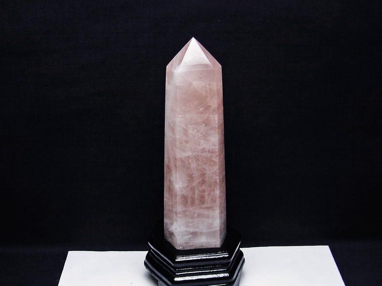 1.1Kg ローズクォーツ ポイント 六角柱 台座付属 一点物 152-2572