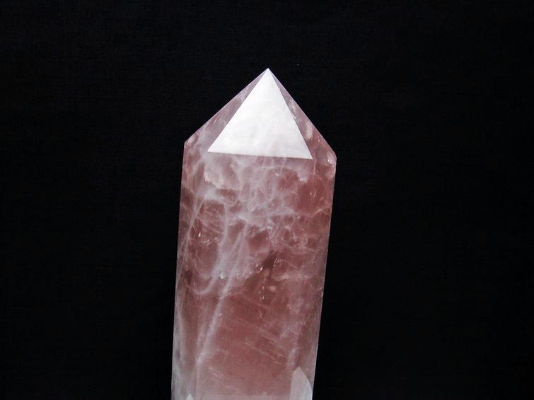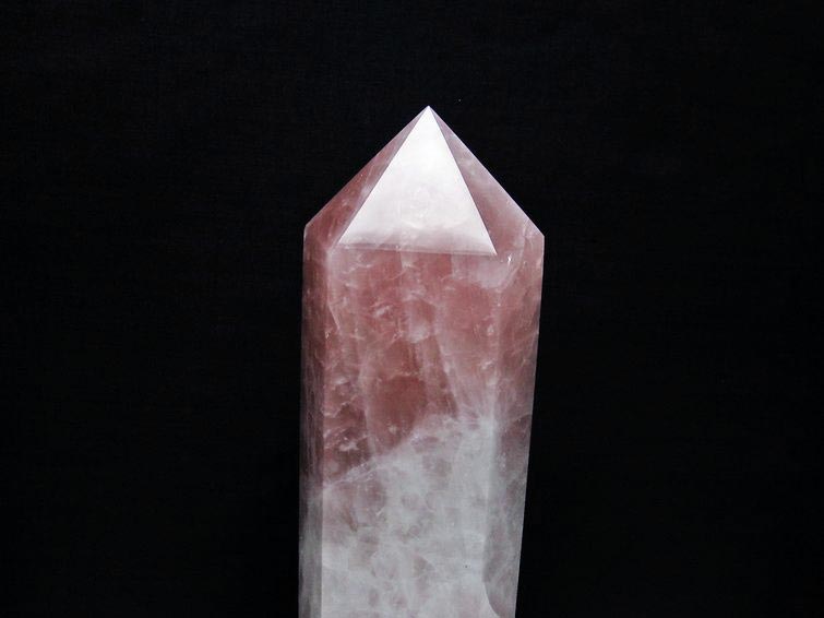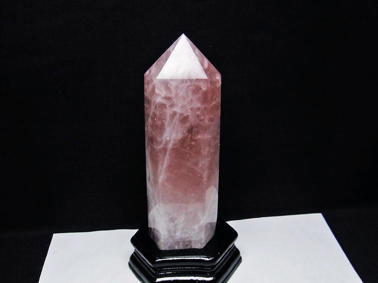 - 1.1Kg ローズクォーツ ポイント 六角柱 台座付属