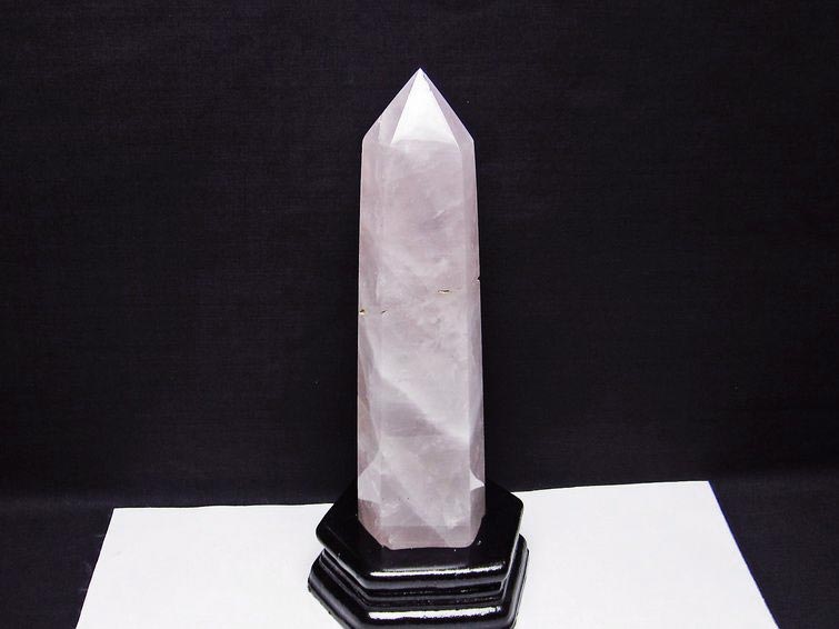 - ローズクォーツ ポイント 六角柱 台座付属