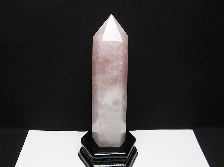 - ローズクォーツ ポイント 六角柱 台座付属