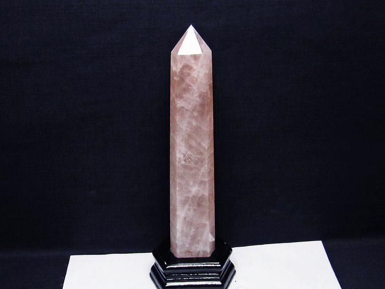 - ローズクォーツ ポイント 六角柱 台座付属