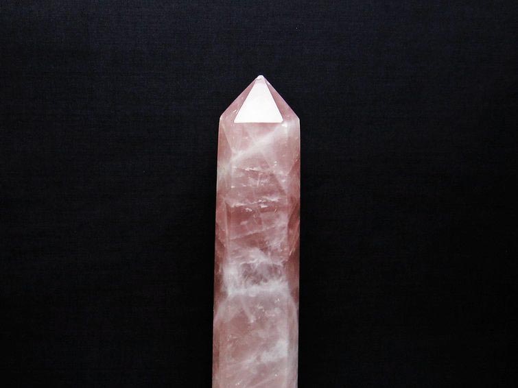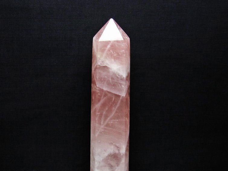 - 1.2Kg ローズクォーツ ポイント 六角柱 台座付属