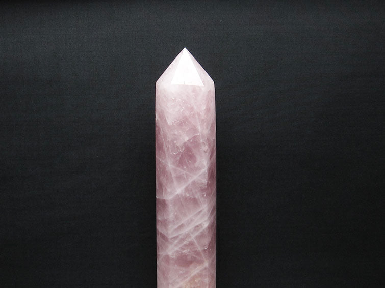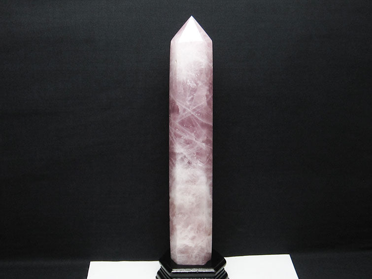 - 1.5Kg ローズクォーツ ポイント 六角柱 台座付属