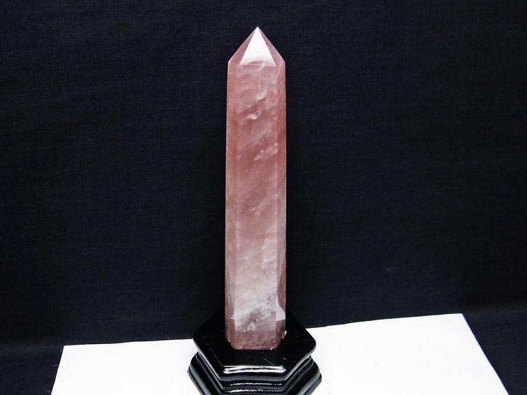 - ローズクォーツ ポイント 六角柱 台座付属