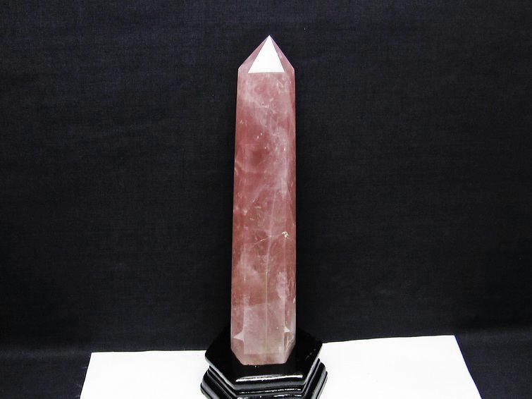 - ローズクォーツ ポイント 六角柱 台座付属