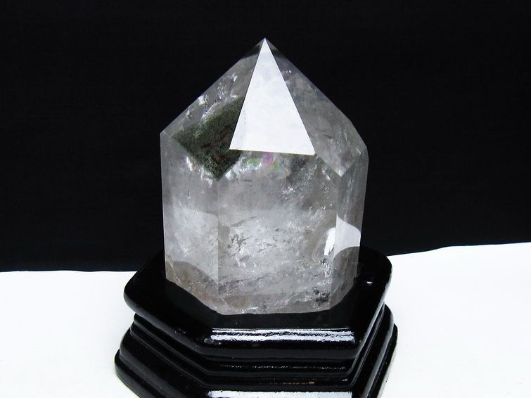 グリーンファントム 六角柱 虹入り 台座付属 一点物 152-3868