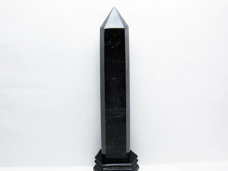 - 2.4Kg モリオン 黒水晶 六角柱 台座付属