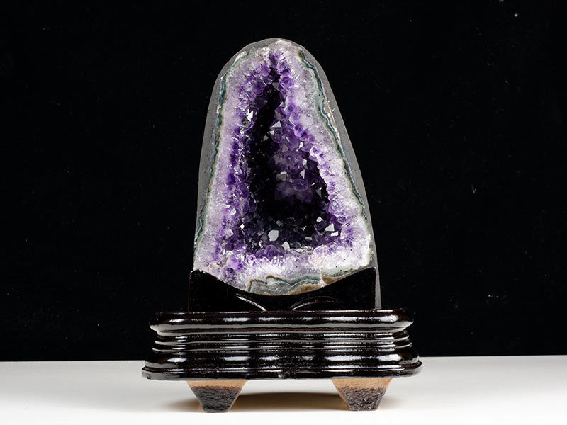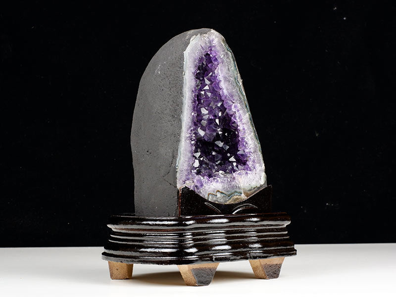 これを半分に切断することで、内部の美しい結晶が見えるドーム型になり、自然の中で偶然に出来た独特な形状と美しさをもつインテリアに最適なパワーストーンです。