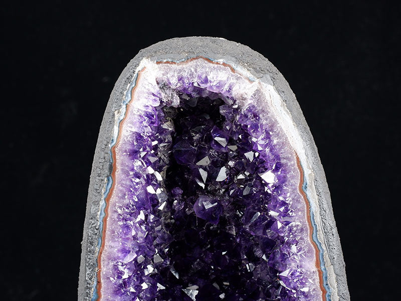 これを半分に切断することで、内部の美しい結晶が見えるドーム型になり、自然の中で偶然に出来た独特な形状と美しさをもつインテリアに最適なパワーストーンです。