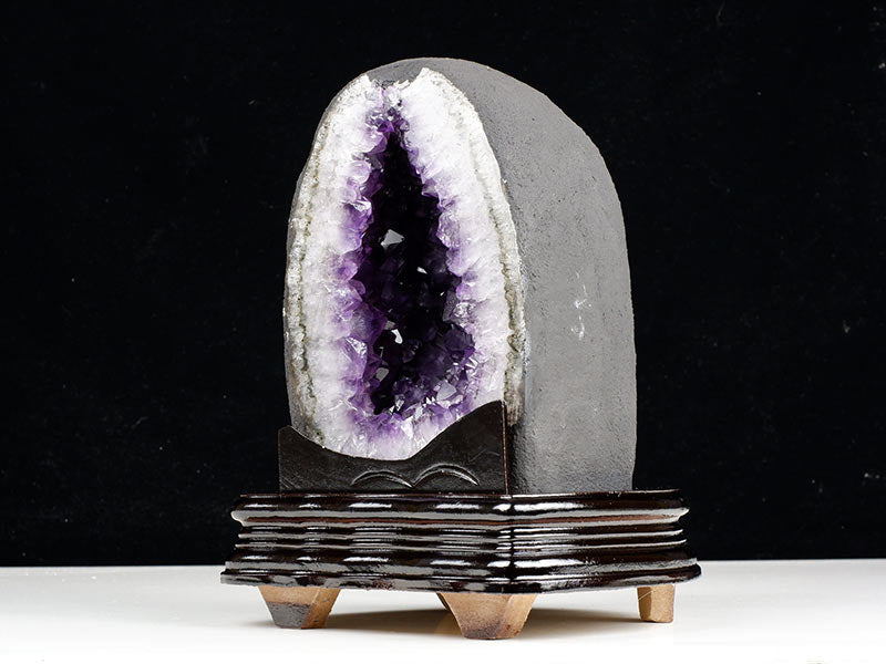 これを半分に切断することで、内部の美しい結晶が見えるドーム型になり、自然の中で偶然に出来た独特な形状と美しさをもつインテリアに最適なパワーストーンです。