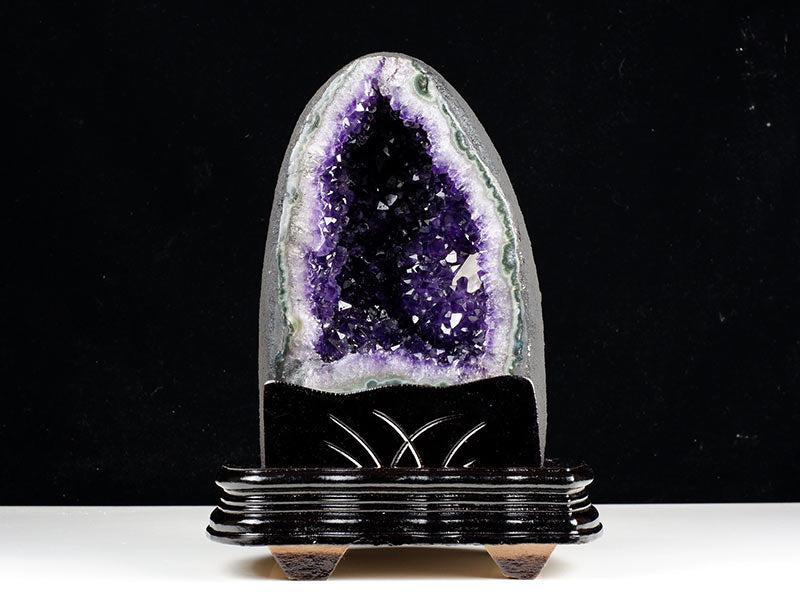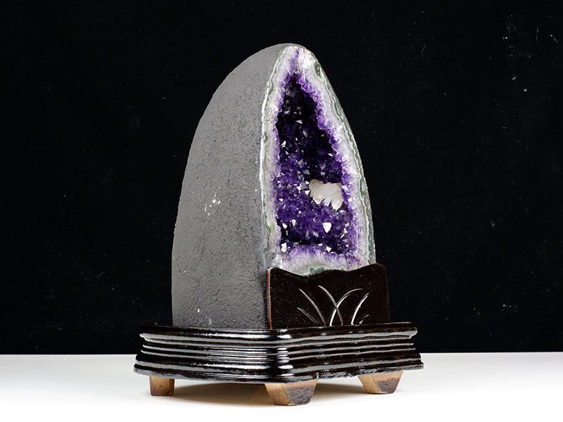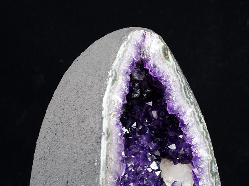 これを半分に切断することで、内部の美しい結晶が見えるドーム型になり、自然の中で偶然に出来た独特な形状と美しさをもつインテリアに最適なパワーストーンです。
