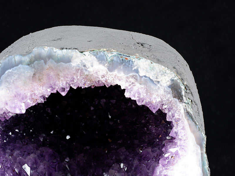 アメジストドームは岩石や地層の内部に出来た晶洞と呼ばれる空洞の内側にアメジストの結晶が成長したもの。