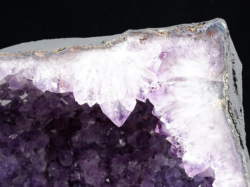 アメジストドームは岩石や地層の内部に出来た晶洞と呼ばれる空洞の内側にアメジストの結晶が成長したもの。