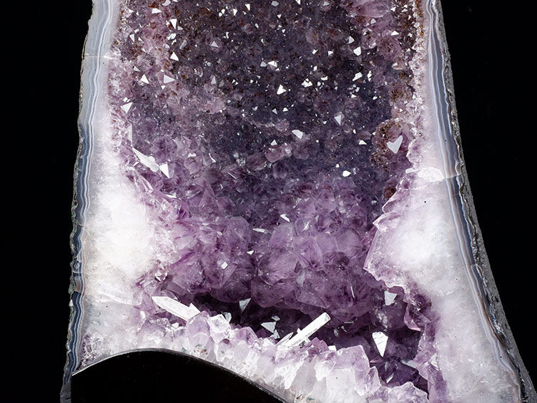 アメジストドームは岩石や地層の内部に出来た晶洞と呼ばれる空洞の内側にアメジストの結晶が成長したもの。