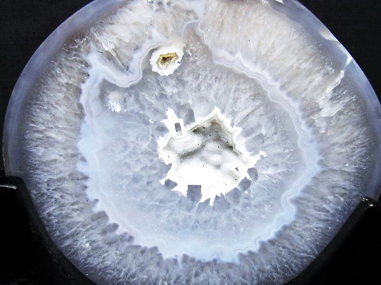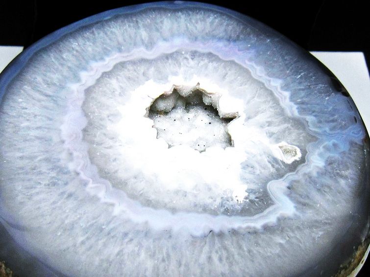 アゲート(瑪瑙)の原石を二つに切ったもので、中には空洞があり、周囲にびっしりと水晶の結晶が並んでいるパワーストーンです。このぽっかりと開いたくぼみ(龍穴)に気が集まるスポットが作り出され、運気上昇に繋がるとされます。龍穴(りゅうけつ)とは、風水における繁栄する土地の事で、龍穴がある場所は天変地異とも無縁であるとされます。